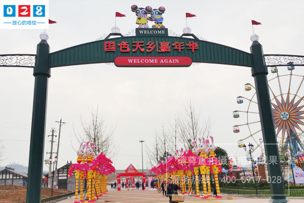 國色天鄉(xiāng)嘉年華游樂園大門設(shè)計(jì)制作安裝首選四川零貳捌成都景區(qū)標(biāo)識標(biāo)牌制作廠家,游樂園景區(qū)大門設(shè)計(jì)制作理念和原則應(yīng)遵循新穎獨(dú)特、美觀大方,不僅要與周圍環(huán)境相協(xié)調(diào),還要與兒童樂...